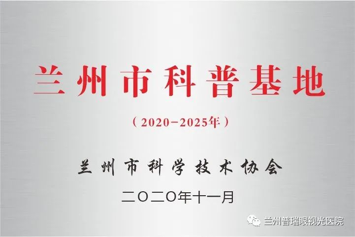 為普及科學(xué)知識(shí),提高全民科學(xué)素養(yǎng),2020年12月15日,蘭州市科協(xié)召開(kāi)“蘭州市委市政府為民辦實(shí)事創(chuàng)建開(kāi)放100個(gè)科普基地命名授牌儀式”,蘭州普瑞眼視光醫(yī)院入選為“蘭州市科普基地”。