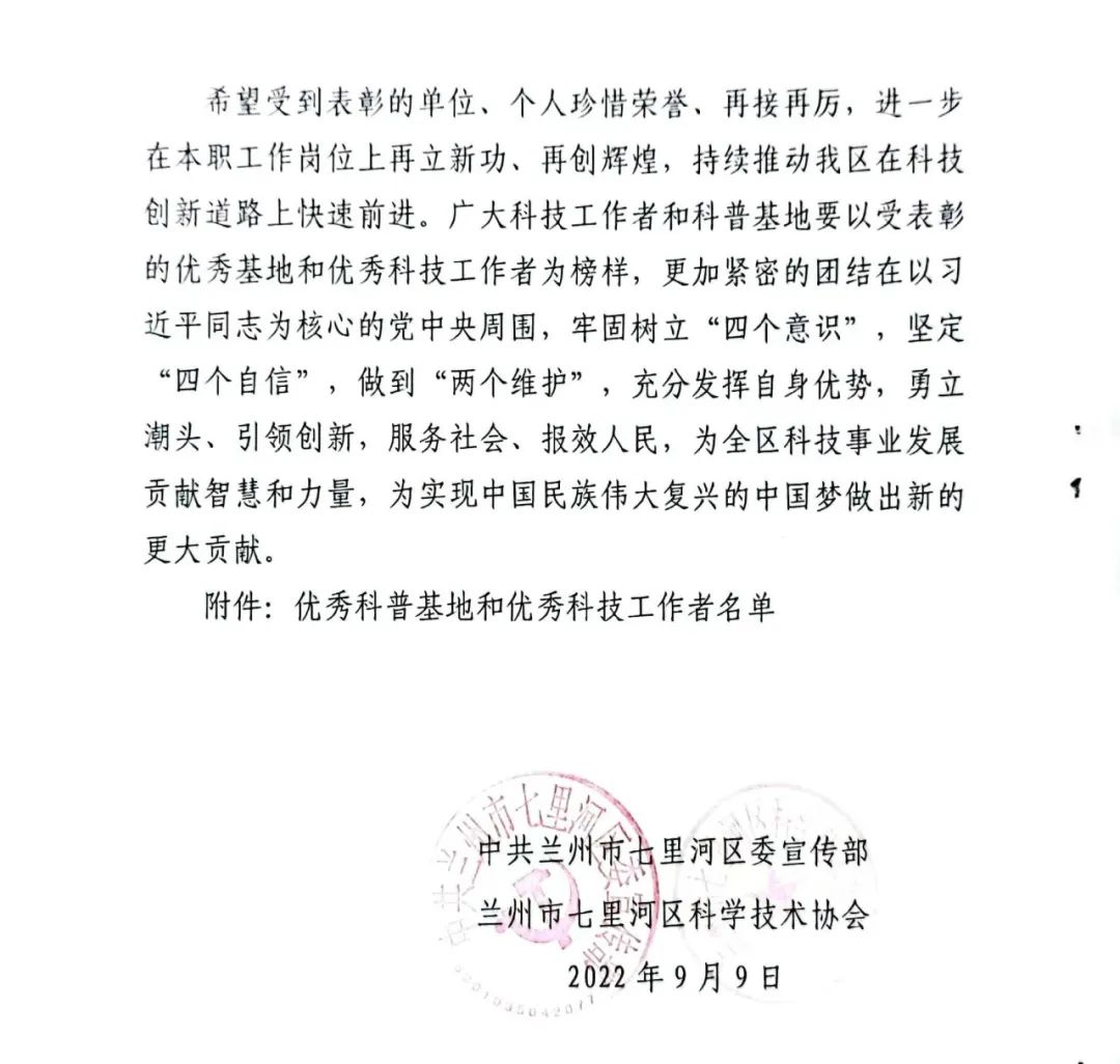 2022年,蘭州市科學(xué)技術(shù)協(xié)會對我市100家科普基地2021年度運(yùn)行績效進(jìn)行了綜合評估。通過查閱日常開放記錄,獎補(bǔ)資金使用和科普活動開展情況等評估資料,經(jīng)會議研究及社會公示,蘭州普瑞眼視光醫(yī)院在2019-2021年度蘭州市科普基地運(yùn)行績效評估中獲評優(yōu)秀!此項榮譽(yù)在蘭州市七里河區(qū)科學(xué)技術(shù)協(xié)會第四次代表大會上正式接受授牌。